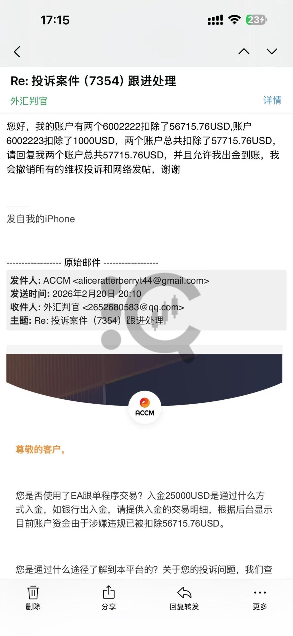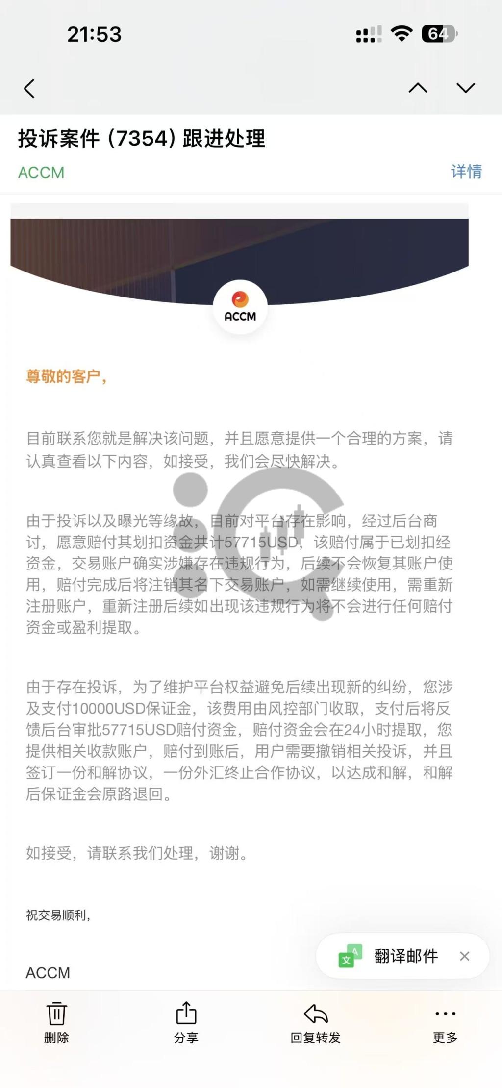 AC 资本市场:黑平台,57715美金清0不给出金,投诉曝光后出现二次诈骗,客服要求支付1万美金保证金才给出金,恶心至极,全网最垃圾最黑的平台,全网曝光